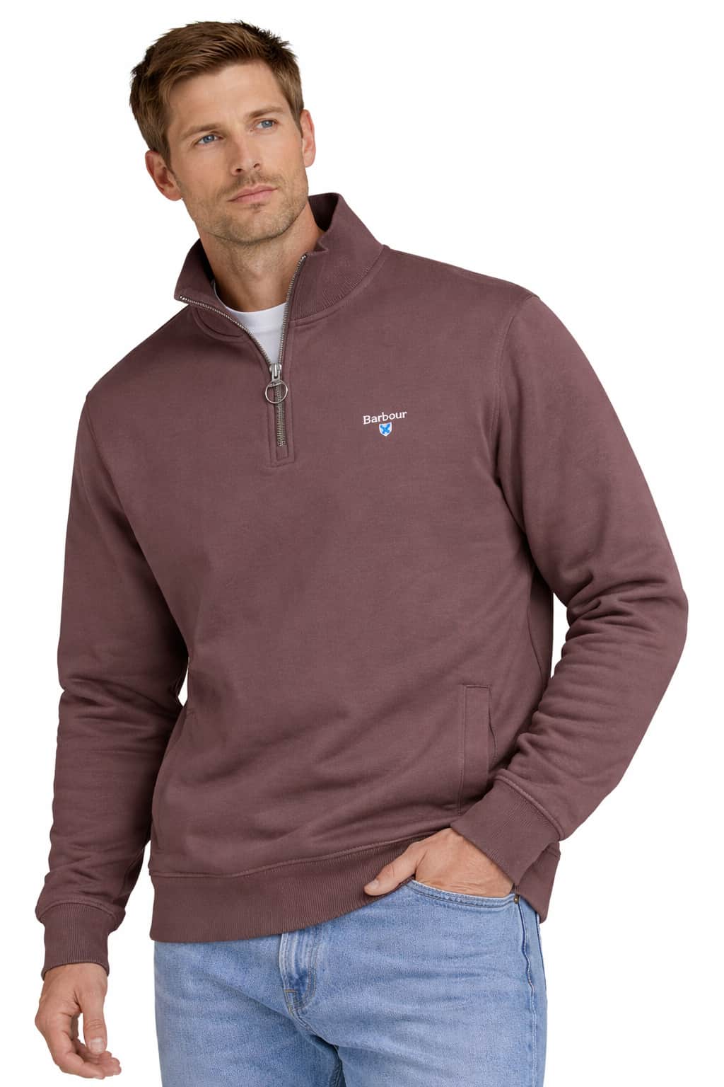Introducing the Barbour Beckhill Half-Zip Sweatshirt at Kelvin Graham Menswear, a versatile piece designed for refined smart-casual wear. Made from 100% cotton with a soft, brushed finish for all-day comfort, this sweatshirt features a practical half-zip fastening and is finished with the iconic Barbour Saltire crest embroidered on the chest, adding a distinctive touch of heritage style.