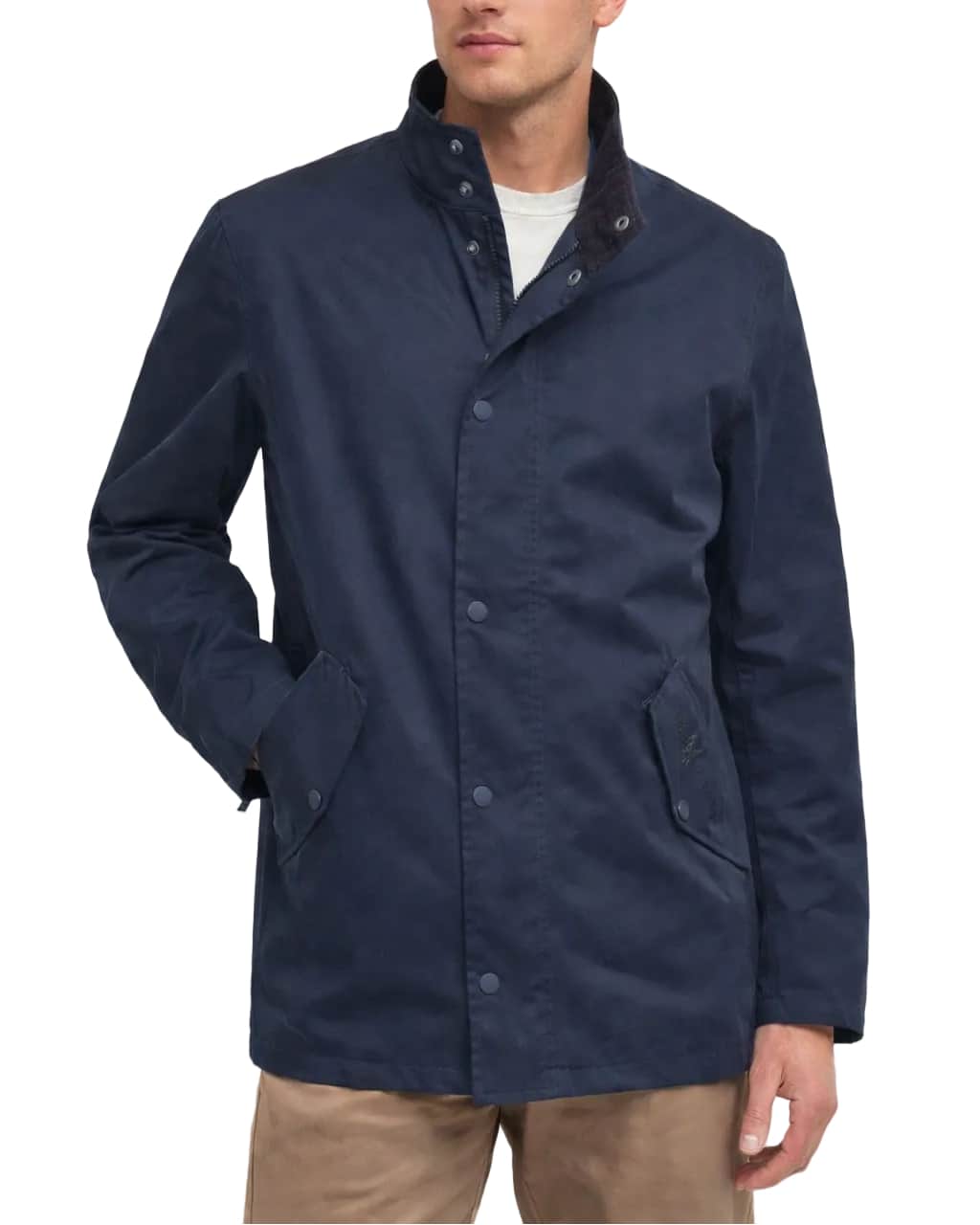 Designed with a structured stand collar, this jacket features a sleek jetted zip fasten pocket alongside lower welt pockets finished with stud-fastened flaps for secure storage. Subtle Barbour embroidery to the pocket flap adds an authentic finishing touch, while the signature tartan inner back yoke nods to the brand’s heritage.