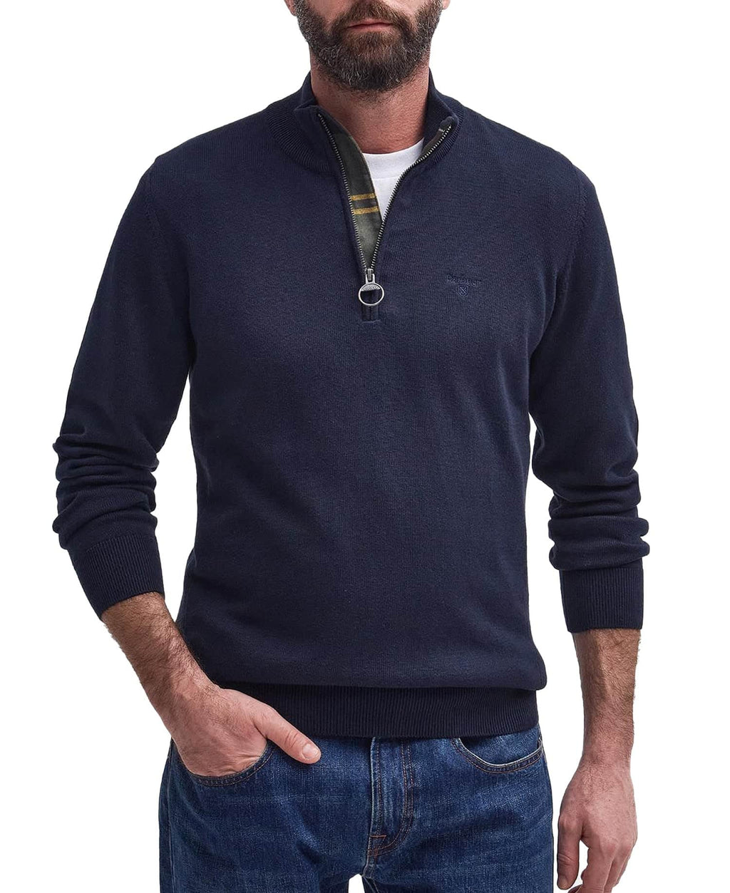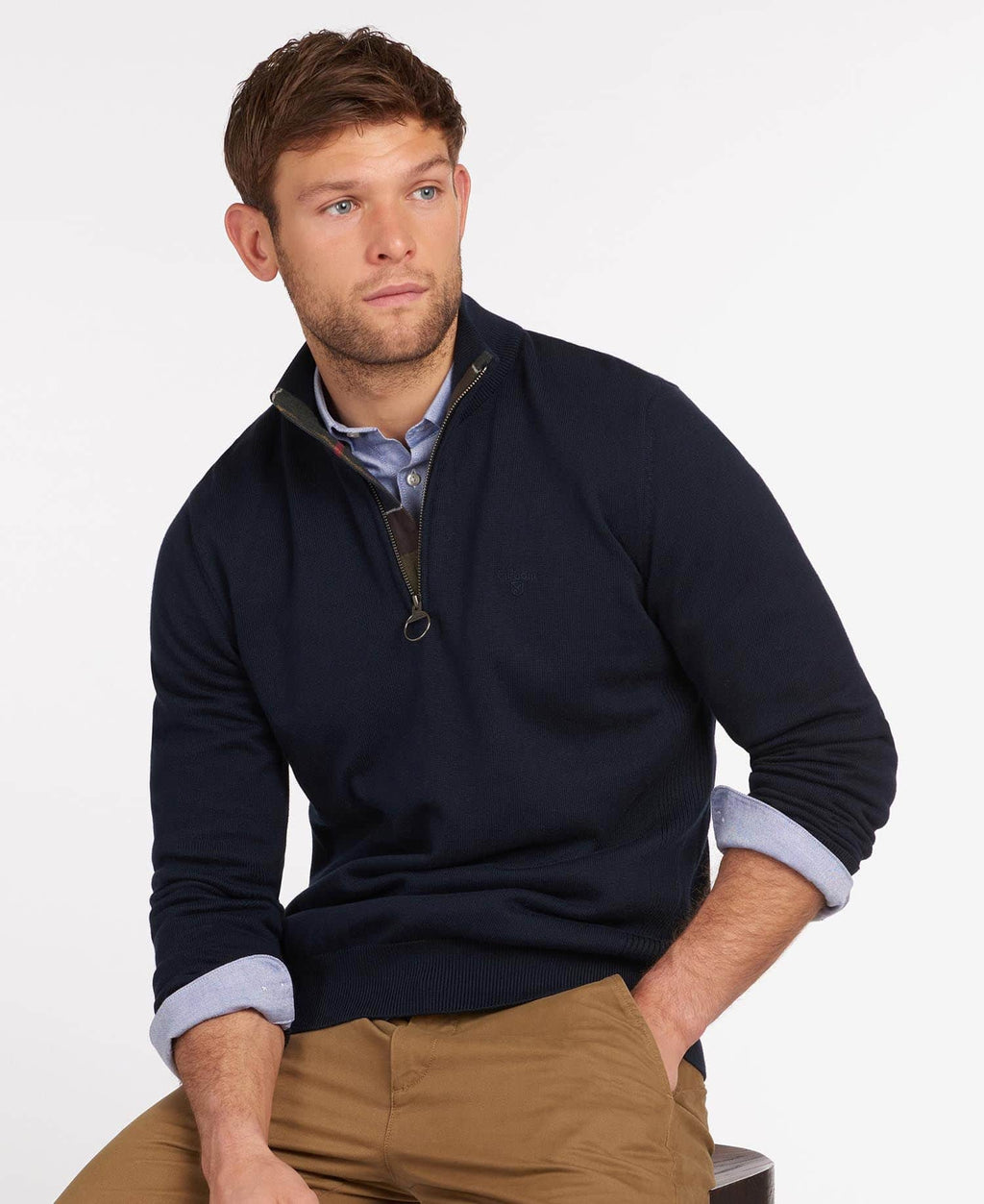 An indispensable pullover, this half-zip sweater is enriched with understated Barbour accents. Crafted from a lightweight cotton knit, the zip closure is adorned with tartan on the inner facing and showcases our distinctive ring-puller detail. The ensemble is perfected with a tonal embroidered logo on the chest, completing the stylish look of this essential jumper.