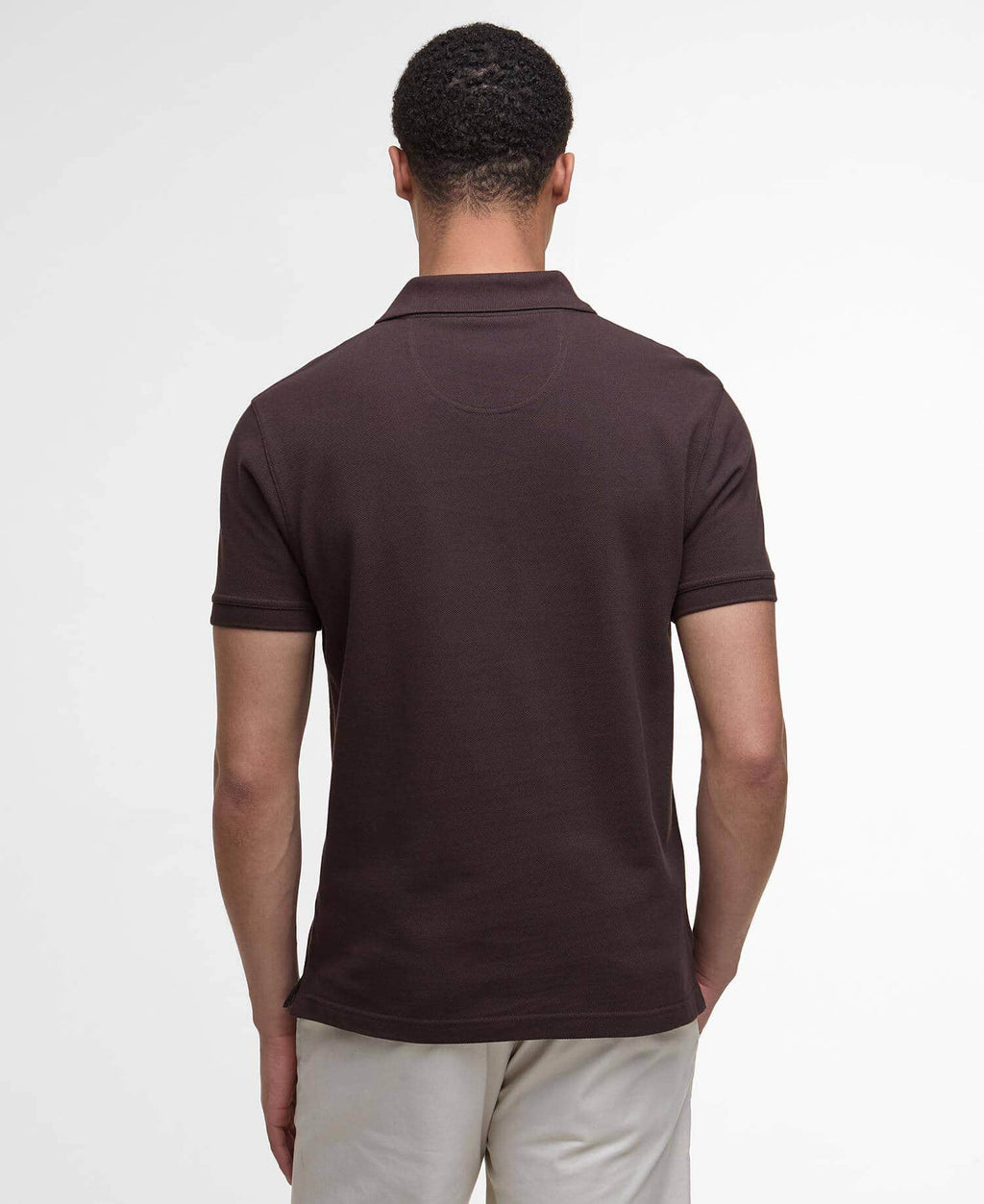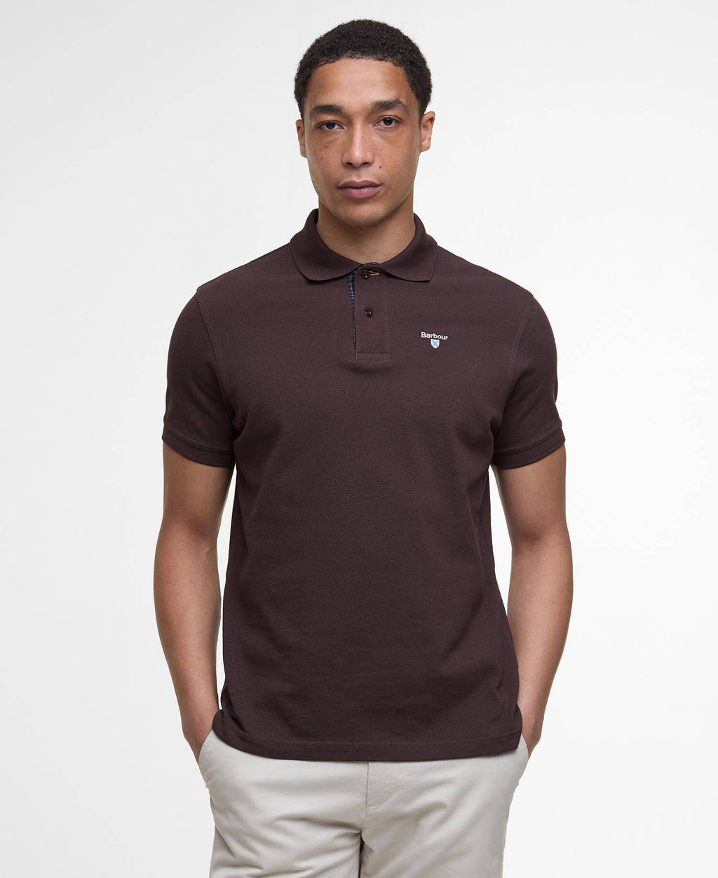 Barbour Mens Tartan Pique Polo Shirt Dark Oak Brown