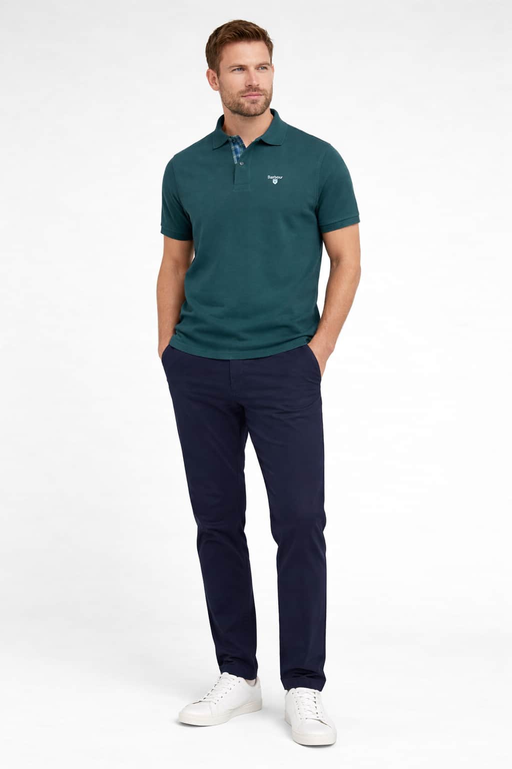 Designed with enduring polo shirt details, it features a traditional two-button placket, a neat lay-flat collar, and ribbed cuffs for a clean, structured finish. Subtle heritage touches elevate the look, including Barbour’s iconic tartan trim at the inner neckline and placket, adding a refined nod to the brand’s country-inspired roots. The signature Barbour crest logo is expertly embroidered on the chest, providing an unmistakable mark of quality and authenticity.
