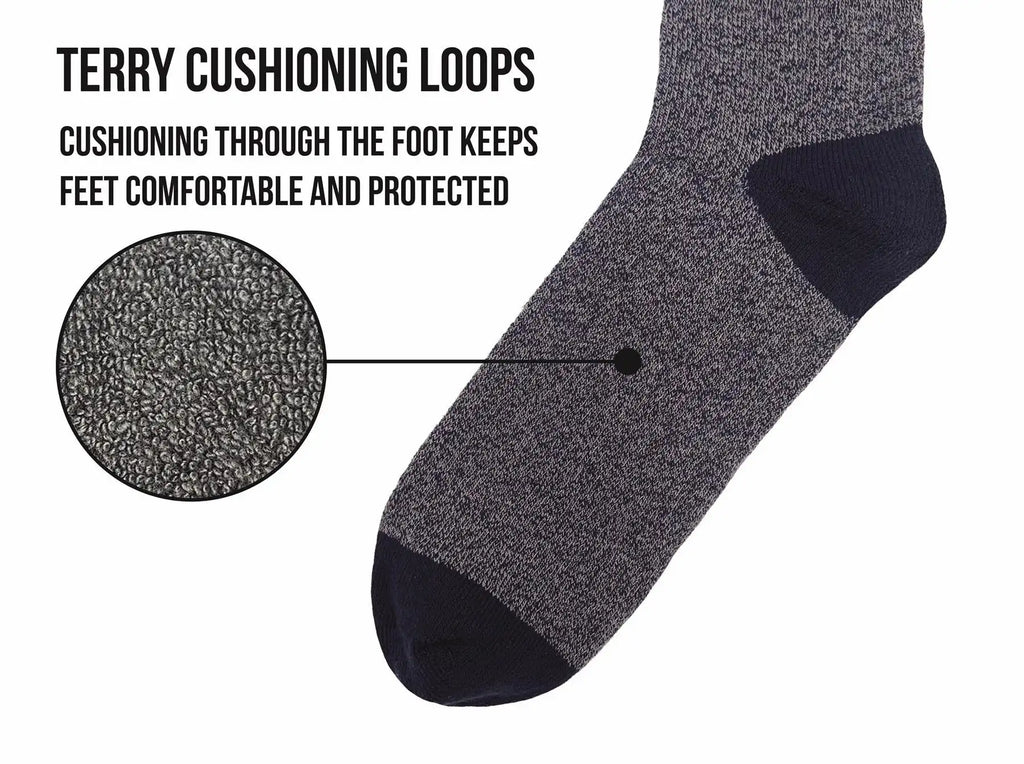 PREMIUM COTTON-RICH BLEND: Crafted with a high-quality cotton-rich composition, these Men's walking boot socks offer a soft touch, ensuring both durability and comfort. Unlike wool socks, our Bramble active socks, with 80% cotton, keep your feet feeling soft, fresh, and warm whether you're enjoying the great outdoors or the comforts of home.