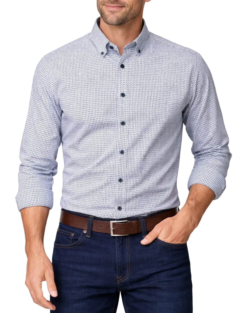 Finished in a timeless blue printed design, this Casa Moda shirt pairs perfectly with jeans, chinos, or tailored trousers. With a clean front and no breast pocket, it delivers a modern, streamlined look that works just as well for the office as it does for weekend wear.