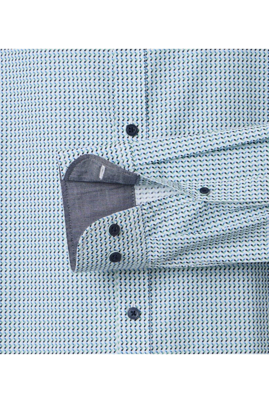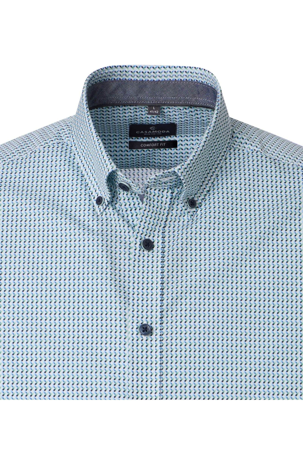The Casa Moda Comfort Fit Shirt Blue/Green Geometric is a smart yet relaxed wardrobe essential, now available in store and online. Designed with Casa Moda’s signature sporty casual fit, this long sleeve shirt is crafted from 100% pure cotton poplin, delivering outstanding comfort, breathability, and all-day wearability.
