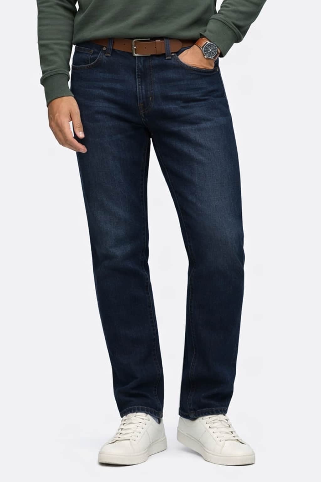 The regular fit provides a comfortable mid-rise with a straight leg profile, making them an easy choice for pairing with casual shirts, knitwear or polos. The rich dark blue wash gives a clean, versatile finish that transitions seamlessly from smart-casual looks to relaxed off-duty styling.
