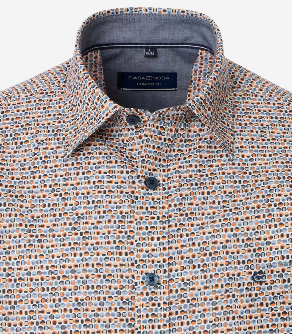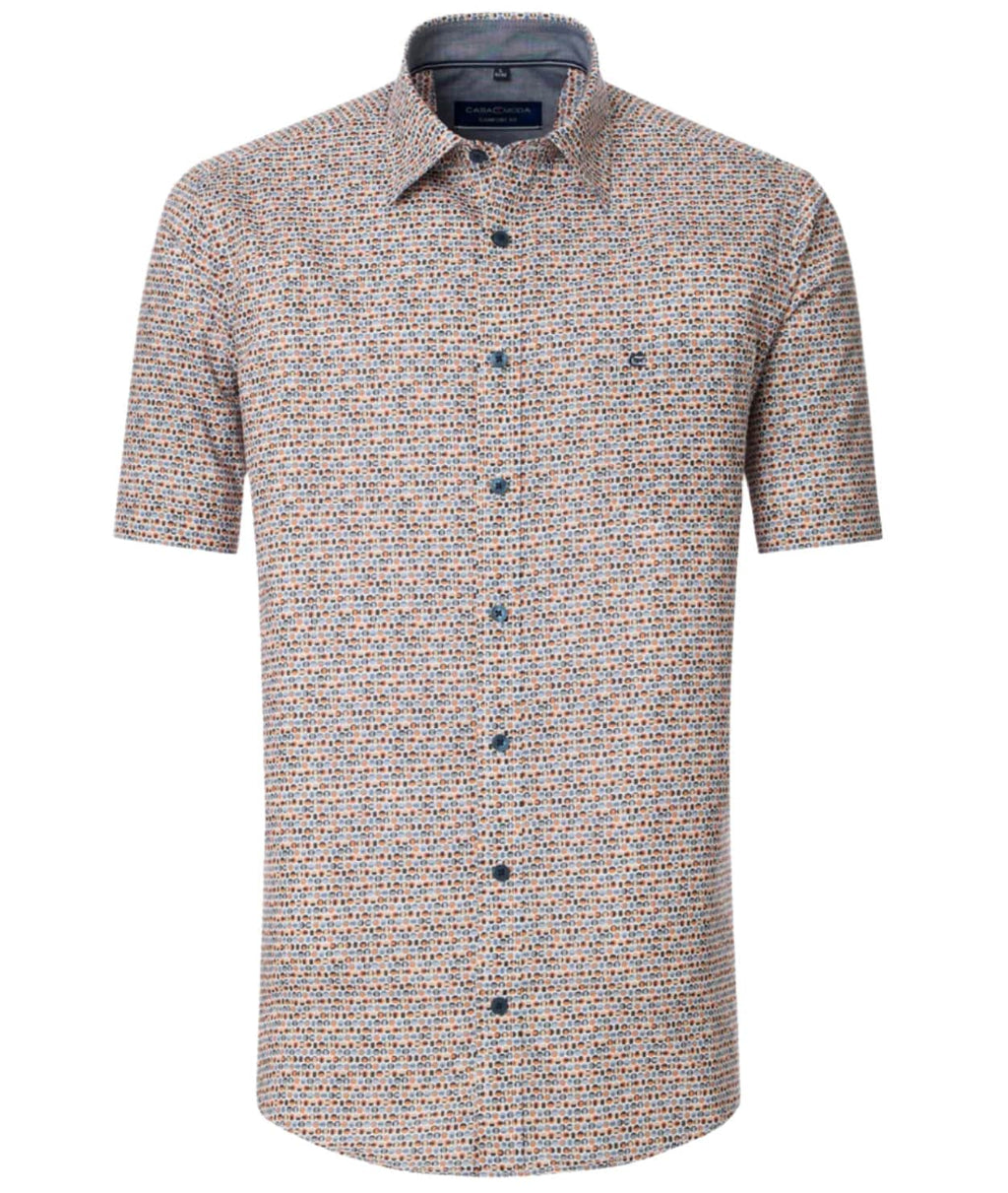 Casa Moda Mens Short Sleeve Shirt Comfort Fit Orange/Blue