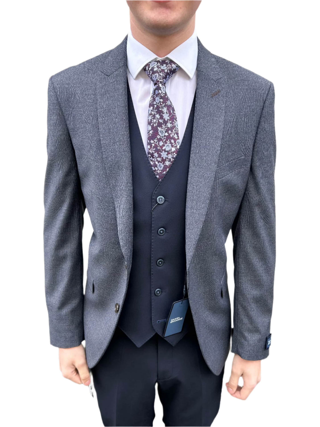 Can be worn with matching waistcoat or with any plain navy waistcoat and trousers.