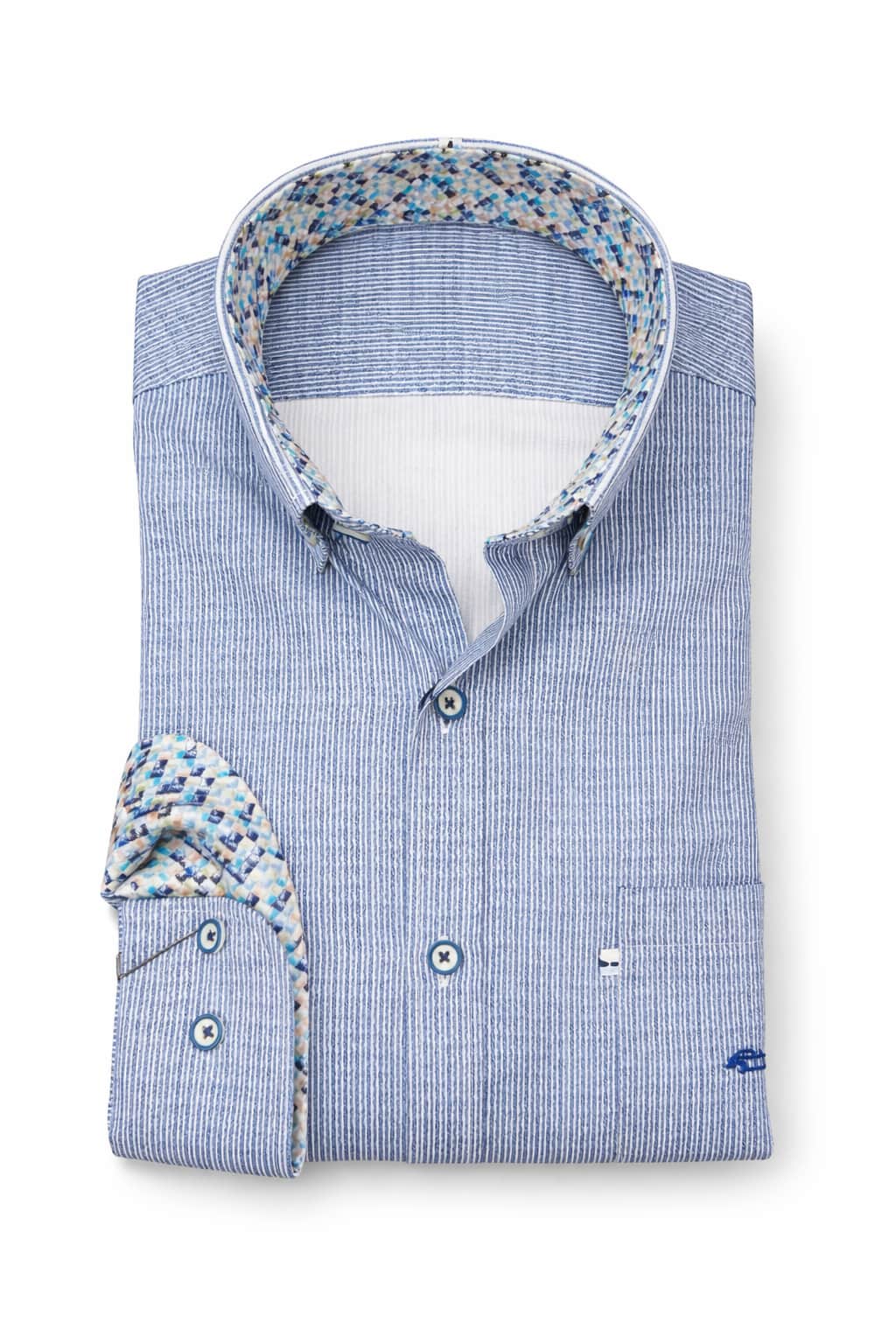 The standout feature is its stunning tight blue stripe print, delivering subtle impact and versatile styling. Whether paired with dark denim for smart casual occasions or dressed up with tailored trousers, the Antes shirt strikes the ideal balance between relaxed and polished.