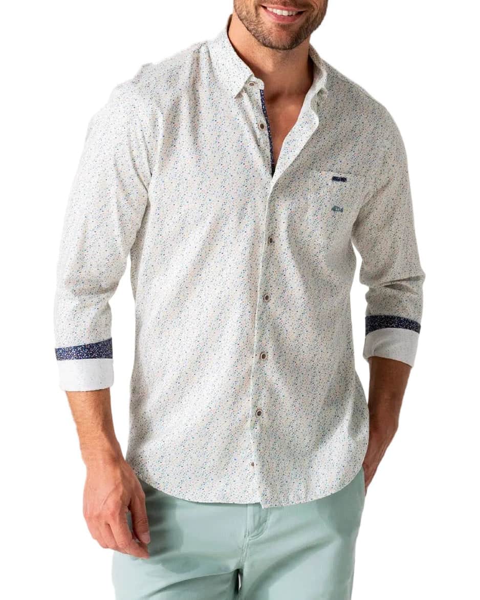 The standout feature is its stunning colourful dot print, delivering subtle impact and versatile styling. Whether paired with dark denim for smart casual occasions or dressed up with tailored trousers, the Antes shirt strikes the ideal balance between relaxed and polished.