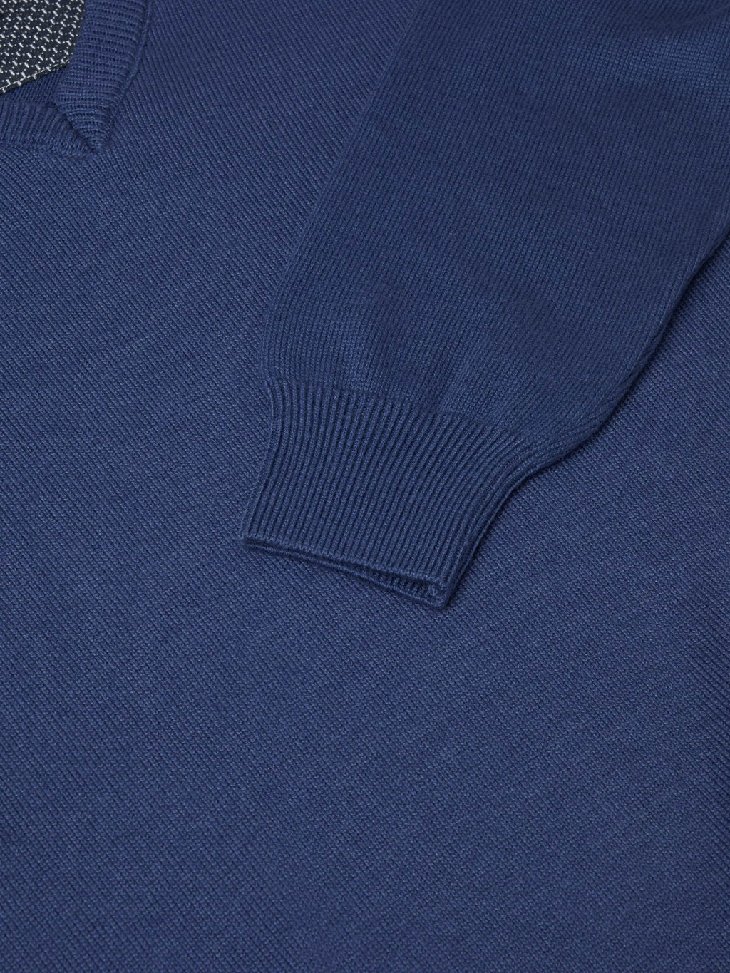 Dark blue regular fit cotton-mix v-neck long sleeve.