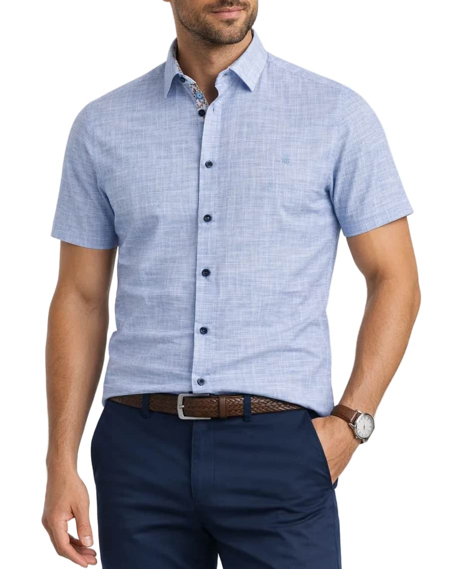 Finished in a clean blue colour palette, the interesting pattern design adds a modern edge while remaining easy to style with jeans, chinos, or tailored shorts. The regular fit and classic short sleeve silhouette deliver a relaxed yet polished look that works perfectly for casual days, weekends, and smart-casual occasions.