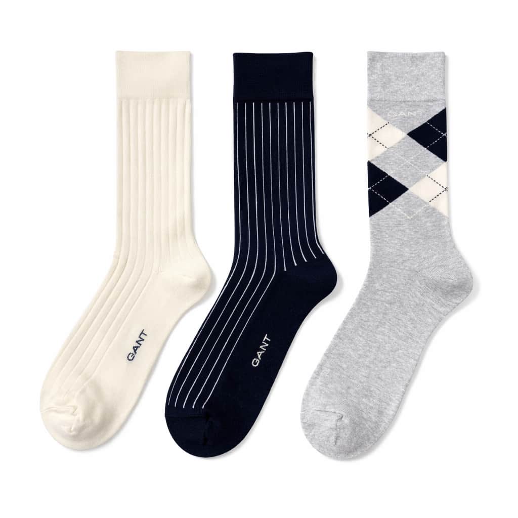 GANT Mens Argyle Stripe And Rib Socks 3 Pack Light Grey Melange