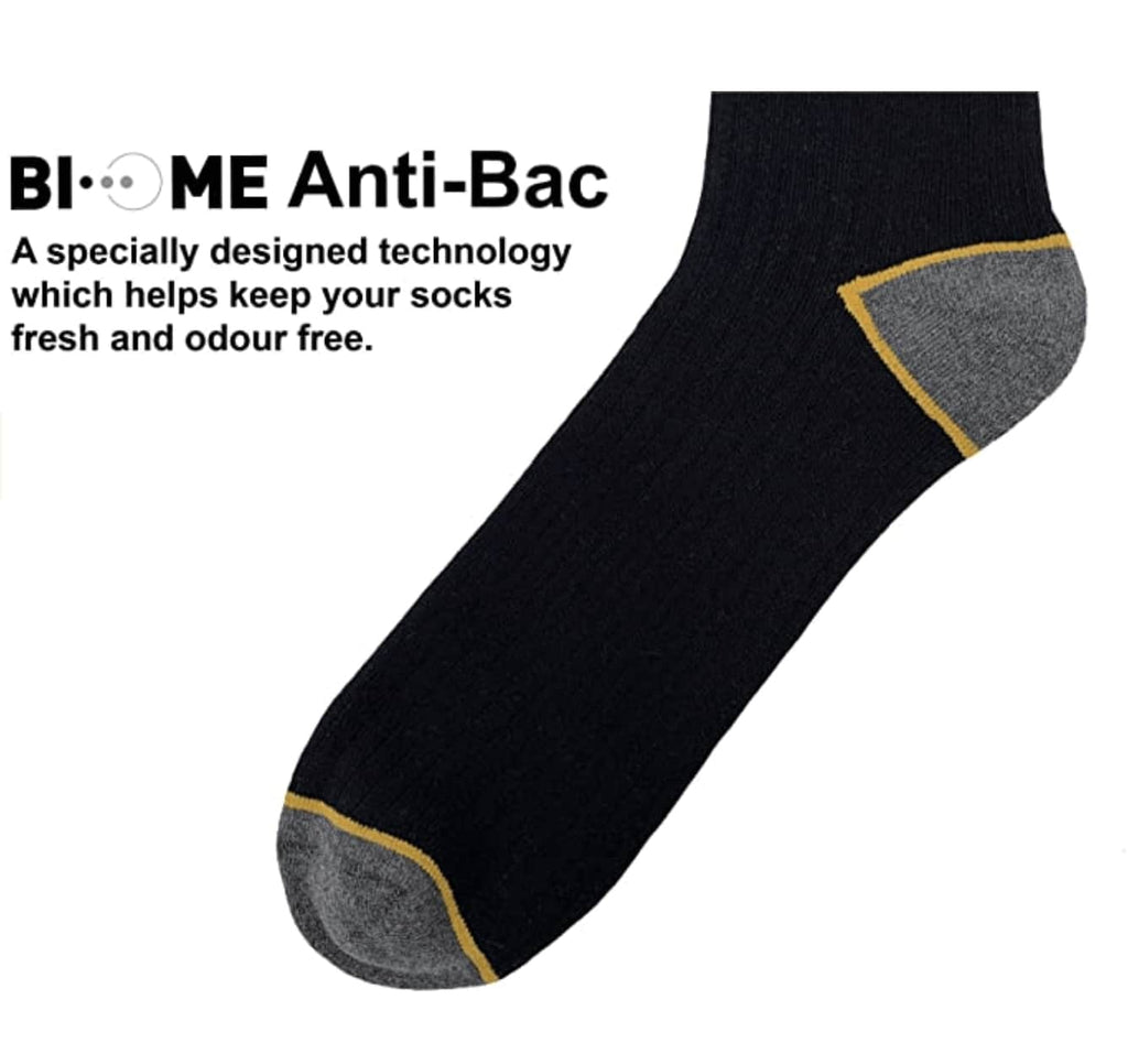 Designed for utmost functionality, these navy ankle boot work socks are equipped with arch support and feature antibacterial yarn technology for enhanced breathability. This ensures that your feet remain dry, fresh, and comfortably warm.