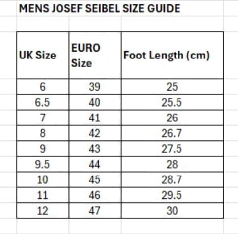 Click Here For Josef Seibel Size Chart