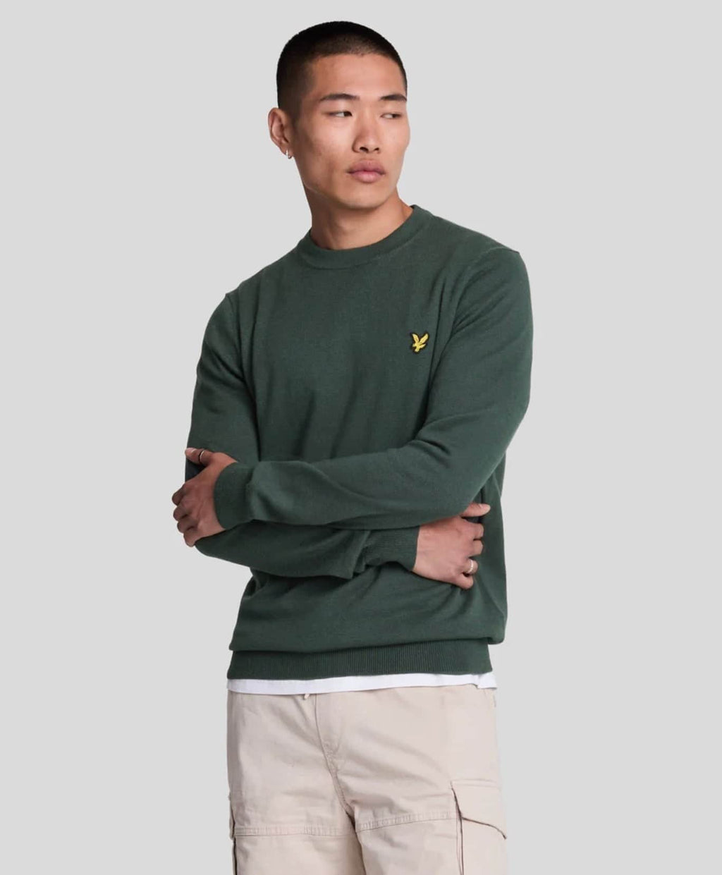 The Lyle & Scott Crew Neck Cotton Merino Jumper is a classic staple, ideal for layering over shirts or tees.