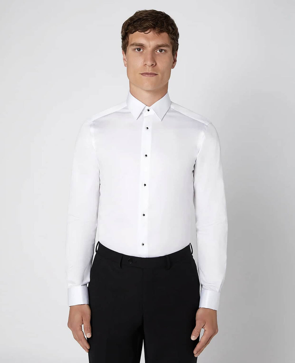Remus Uomo Stud Button Tuxedo Shirt Ashton Slim Fit White