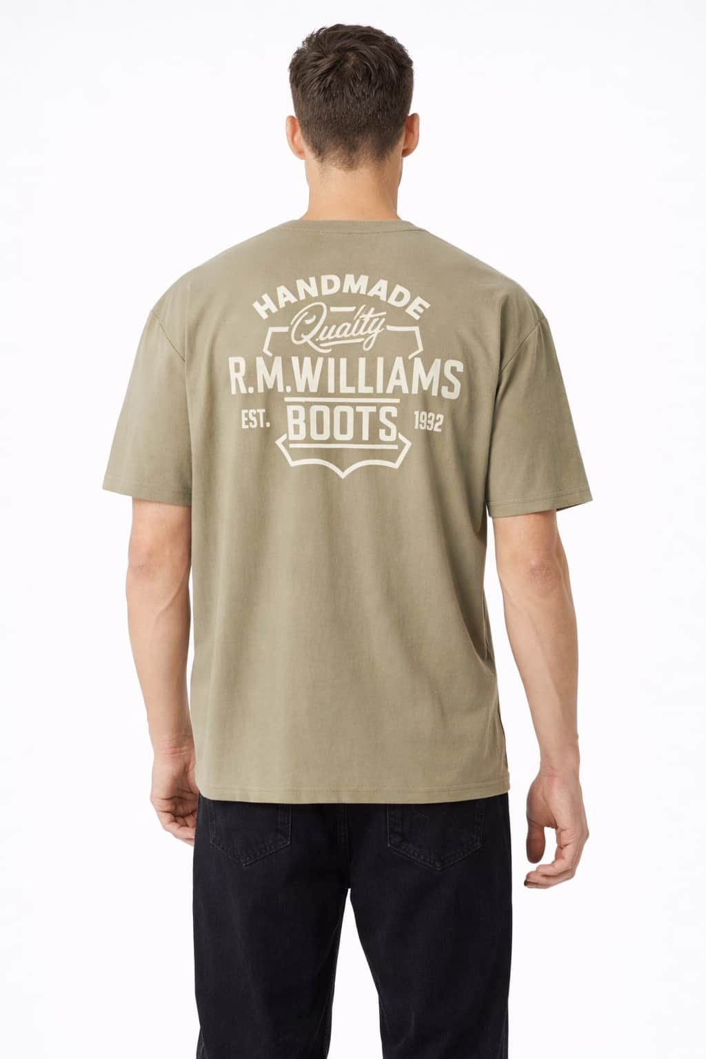 A classic ribbed crew neck and regular short sleeves create a timeless silhouette, while the heritage-inspired boots design printed at the chest and back adds character and unmistakable RM Williams identity. Finished with a straight hem, this versatile tee pairs effortlessly with jeans, chinos, or shorts for laid-back, off-duty styling.