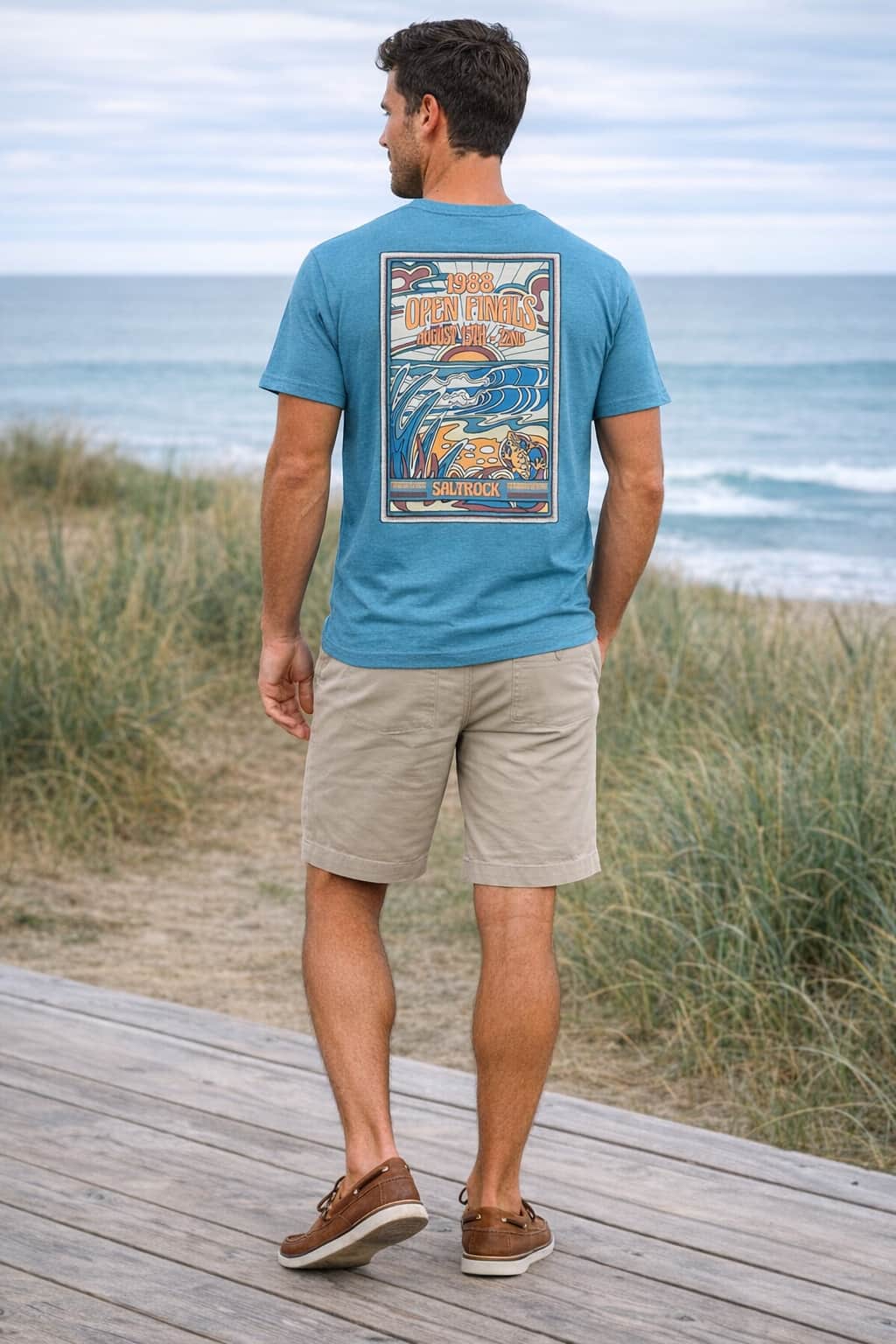 Featuring a bold Open Finals print across the back and a smaller Saltrock print on the front chest, this tee balances standout graphic detail with clean, wearable design. The peached soft hand feel gives the fabric a smooth, premium finish, enhancing comfort whether you're out for the day or relaxing at home.