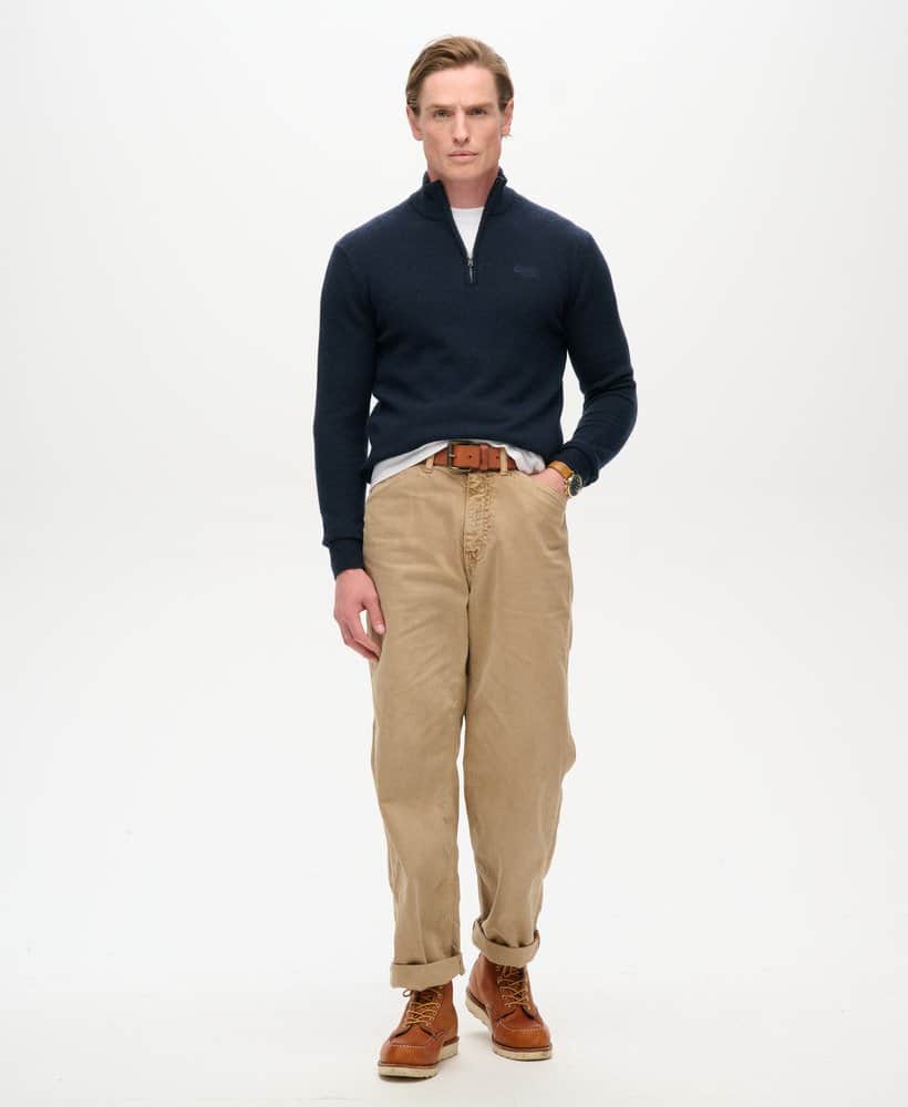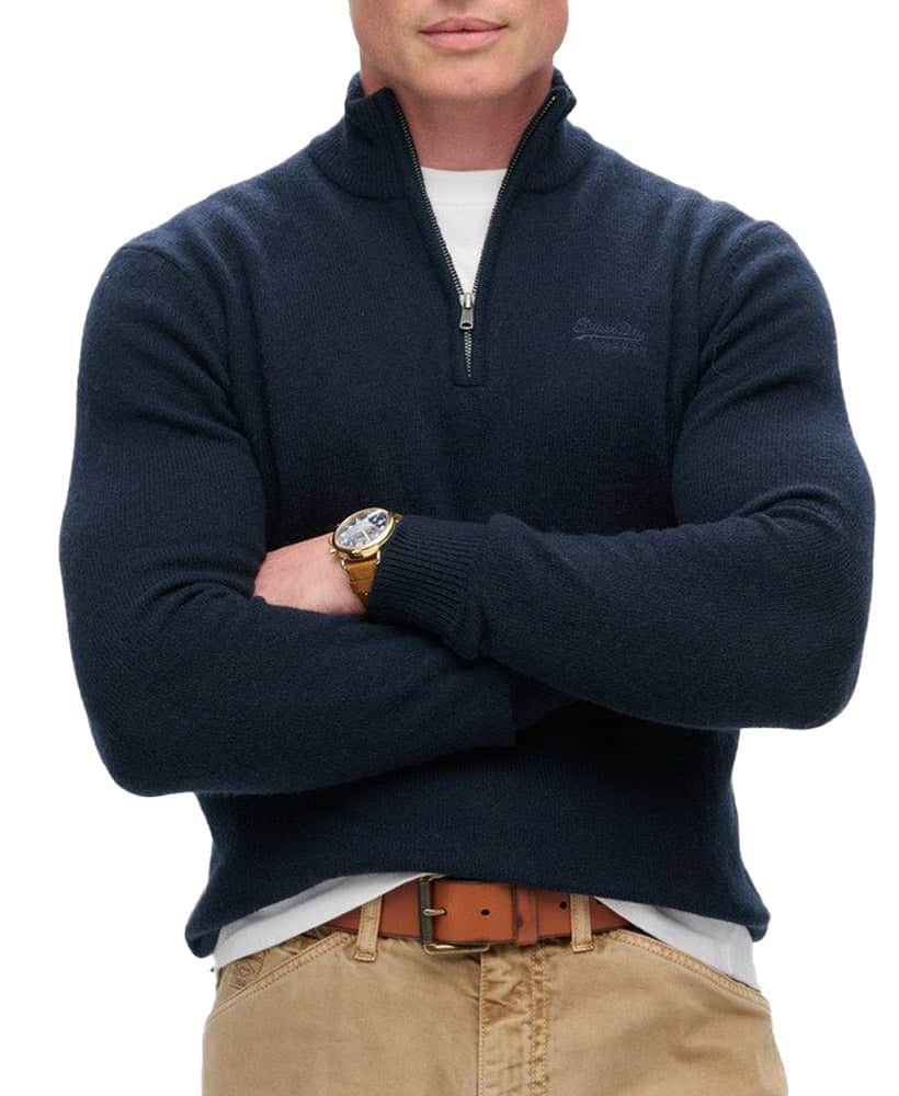 Superdry Mens Wool Blend Half Zip Jumper Charred Navy Marl