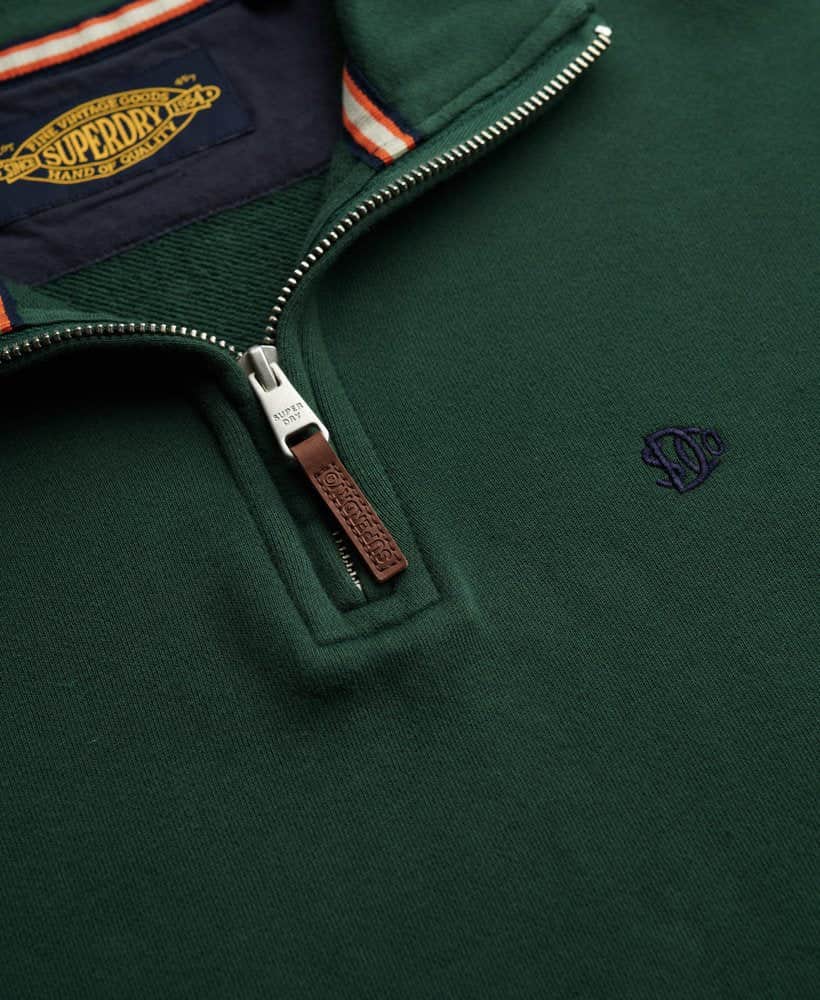 Relaxed fit – the classic Superdry fit. Not too slim not too loose just right. Go for your normal size. Half zip fastening. Ribbed cuffs and hem. Embroidered logo on chest. Superdry logo tabFinish off your look in ultimate comfort with the Preppy Half Zip Jumper.
