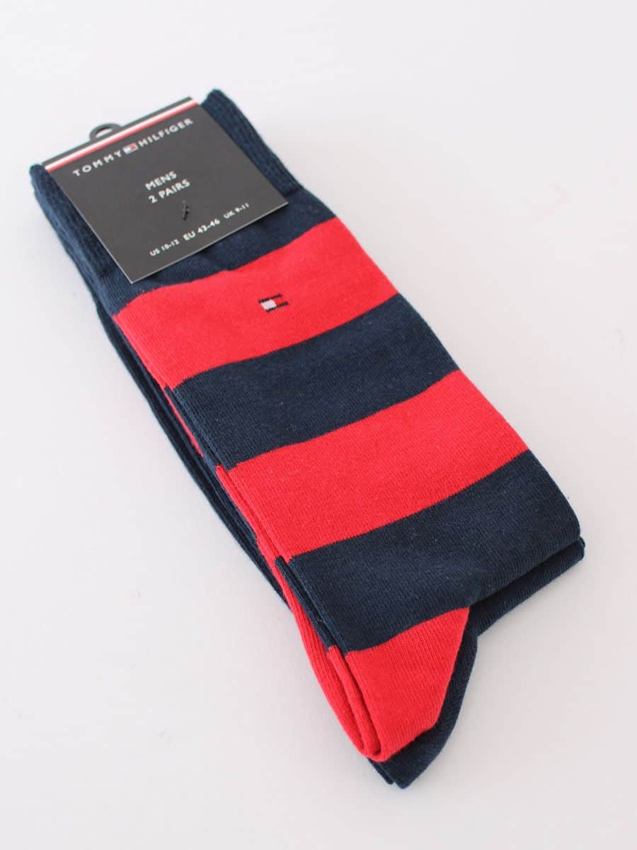 Tommy Hilfiger Mens 2 Pack Rugby Socks Red/Navy