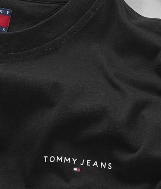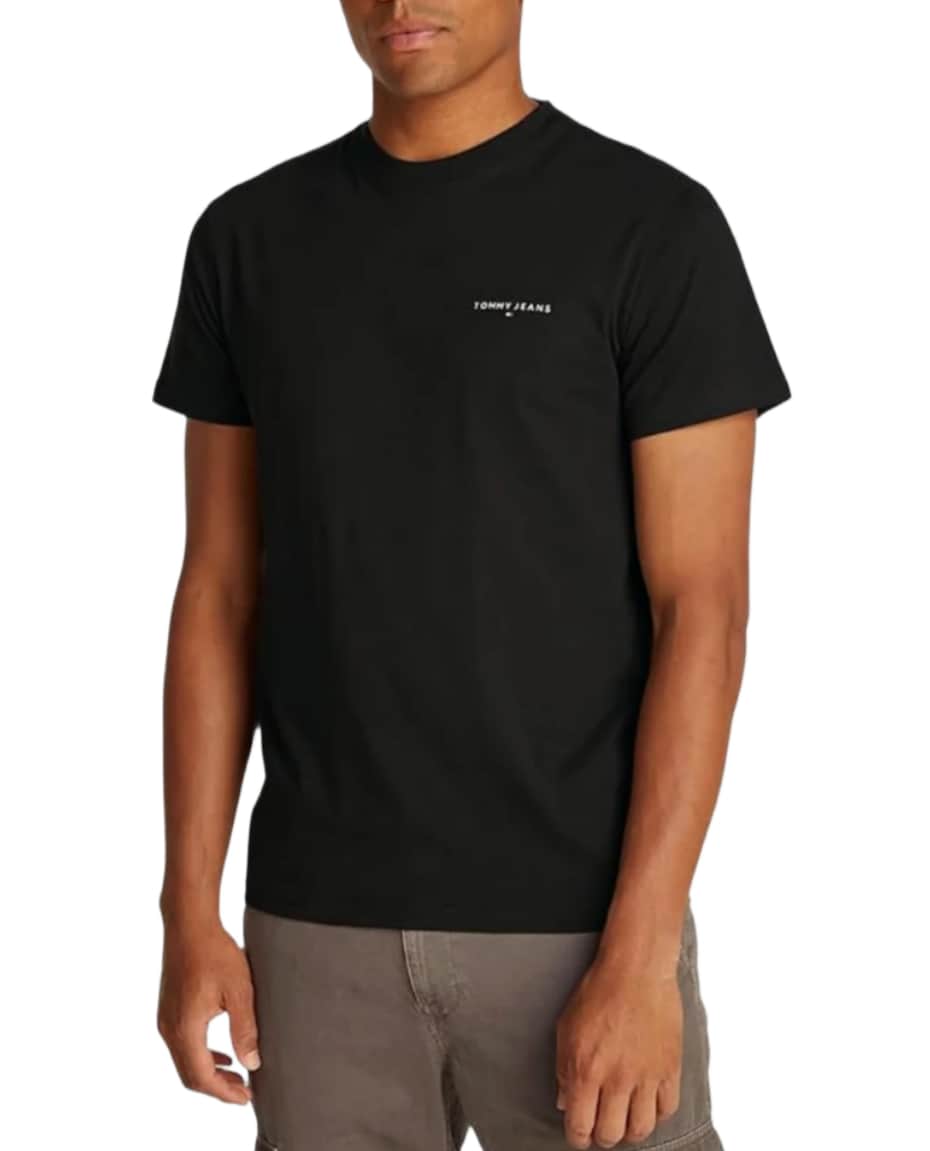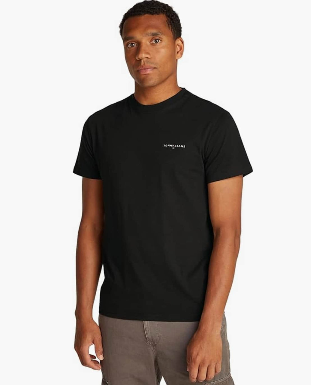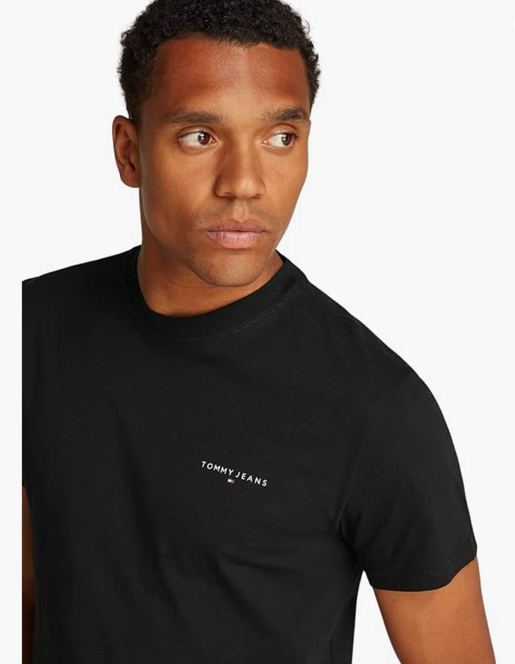 Tommy Jeans Mens Linear Chest Text T-Shirt Black