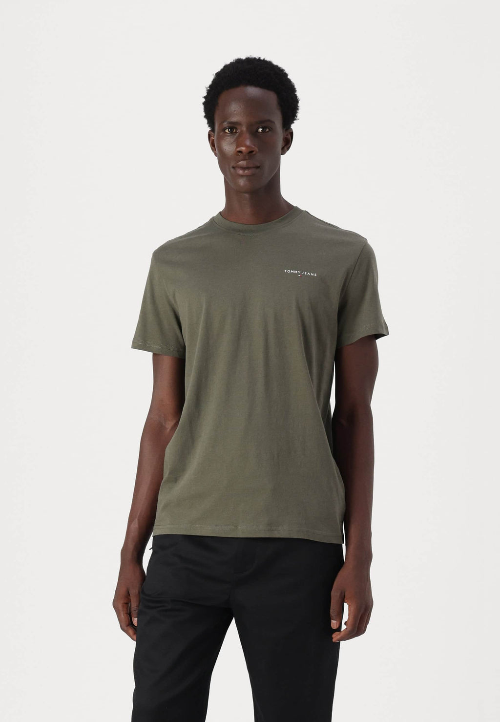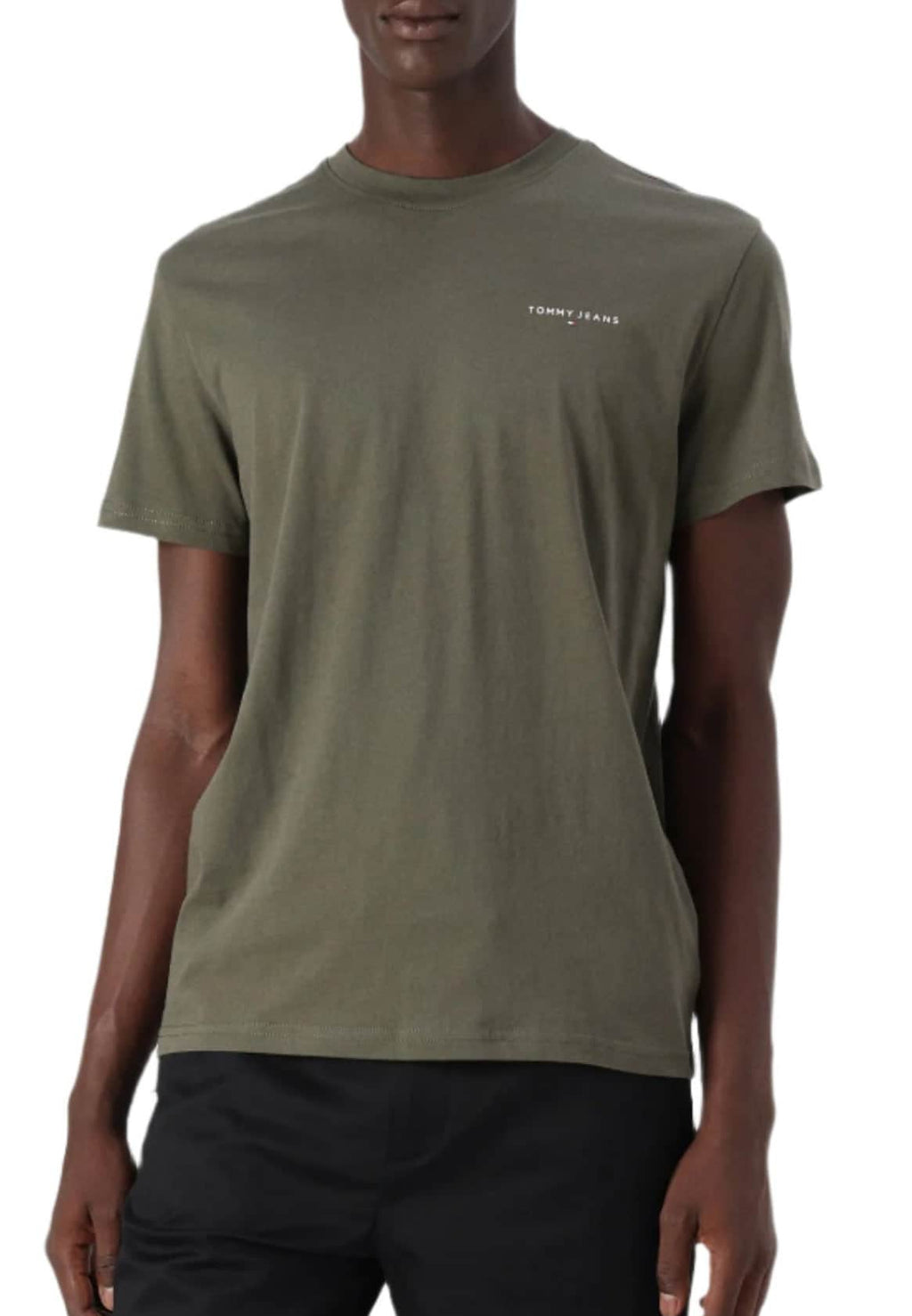 Tommy Jeans Mens Linear Chest Text T-Shirt Fatique Green