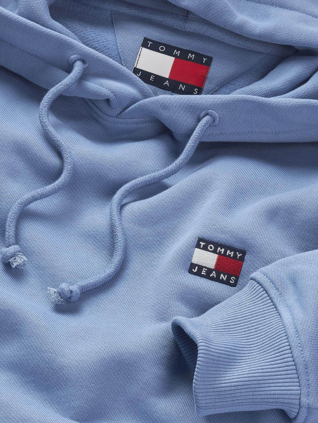 Tommy Jeans Mens Regular Flag Fleece Hoodie Colorado Blue
